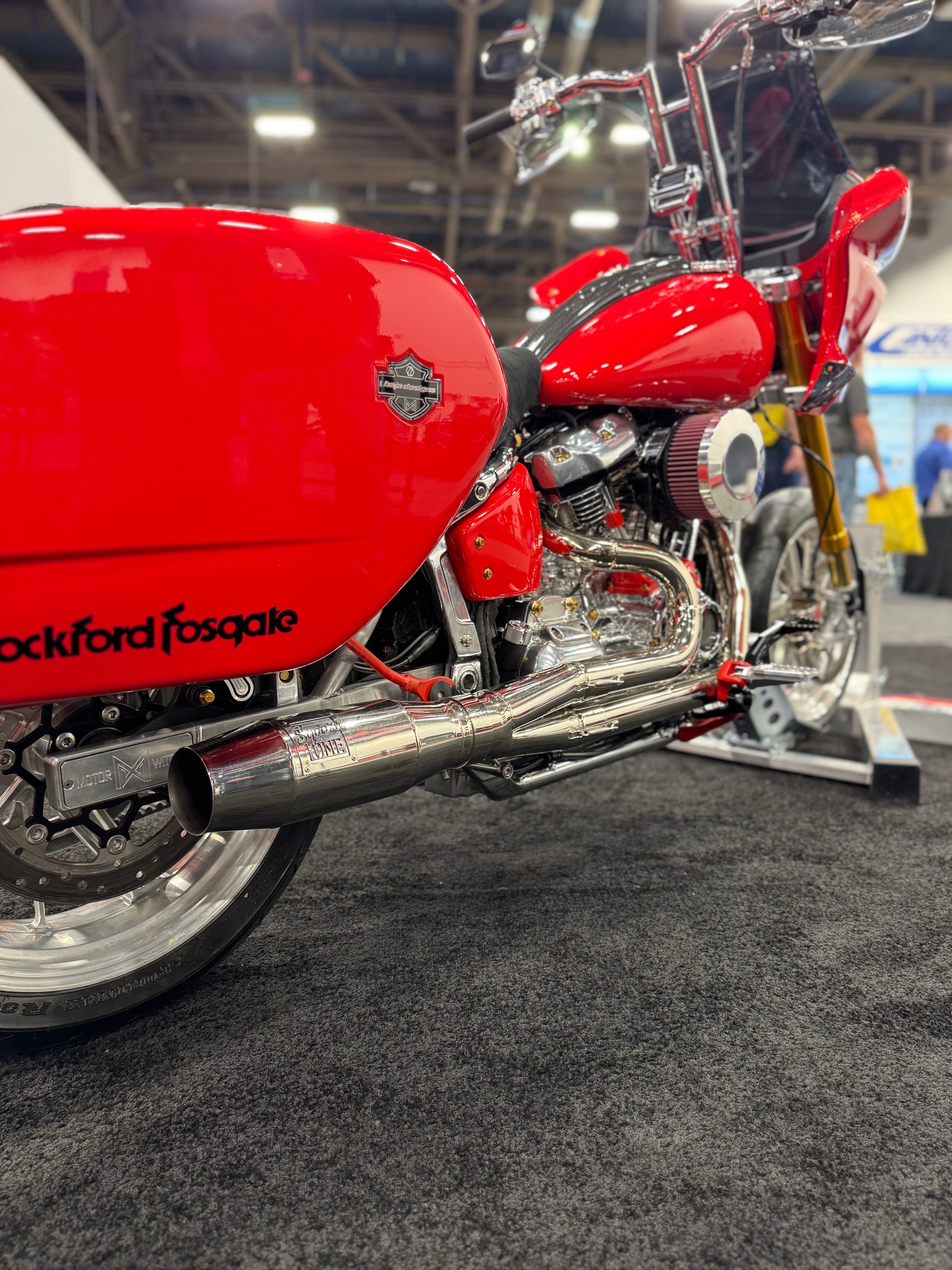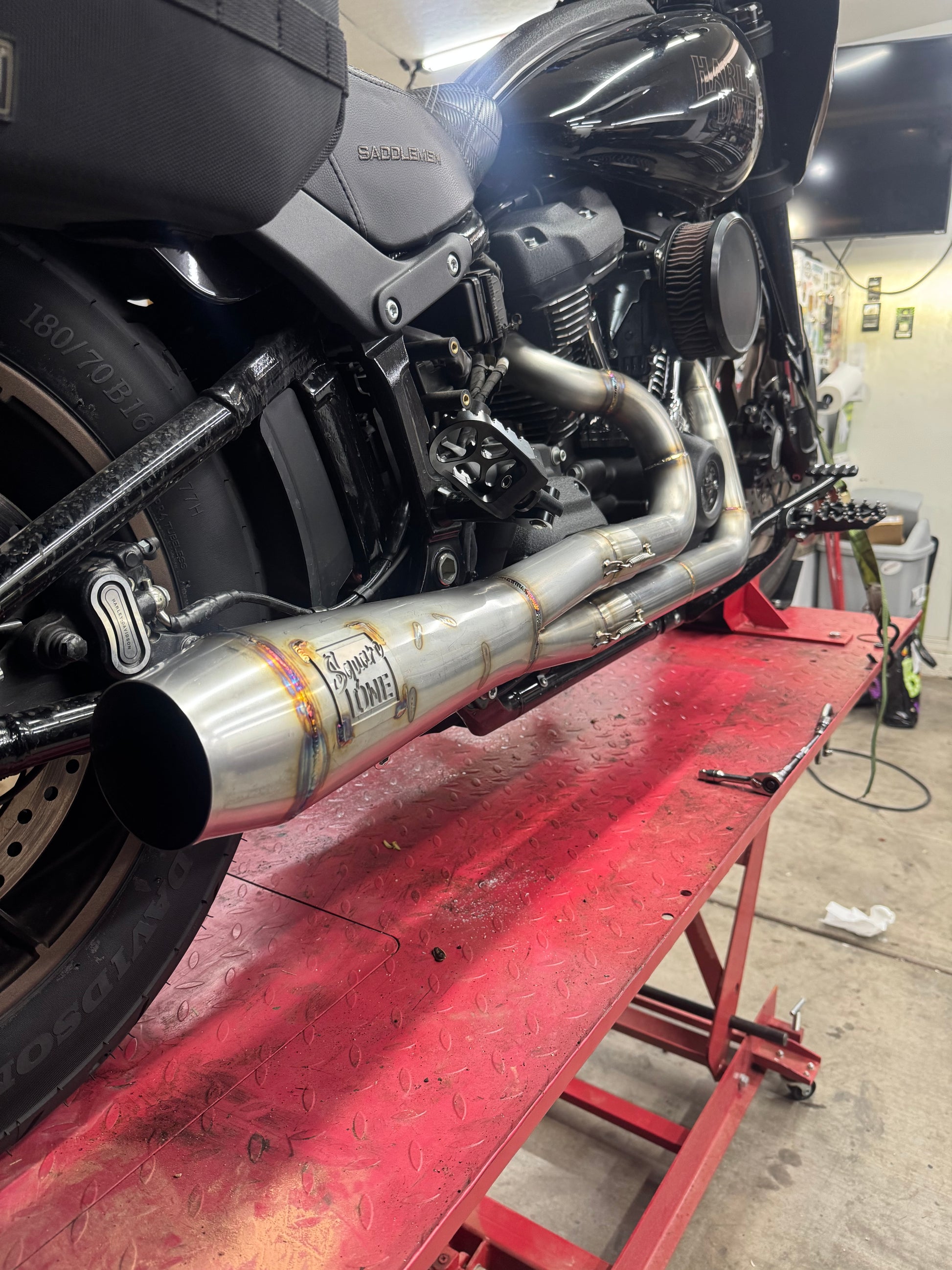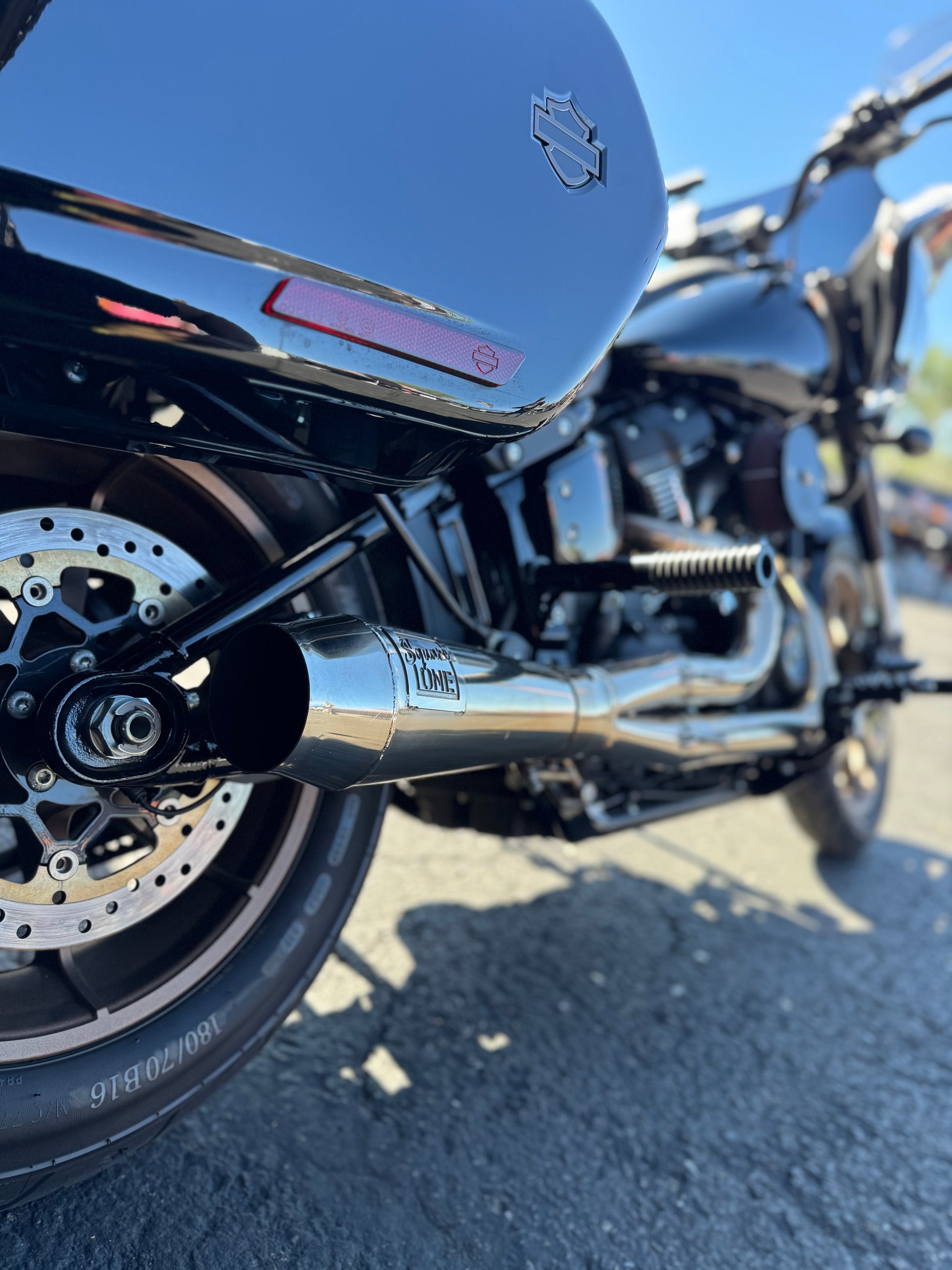 The M8 Softail pipe is a stainless steel stepped primary system with the signature guppy collector with an open cone or widow baffle system